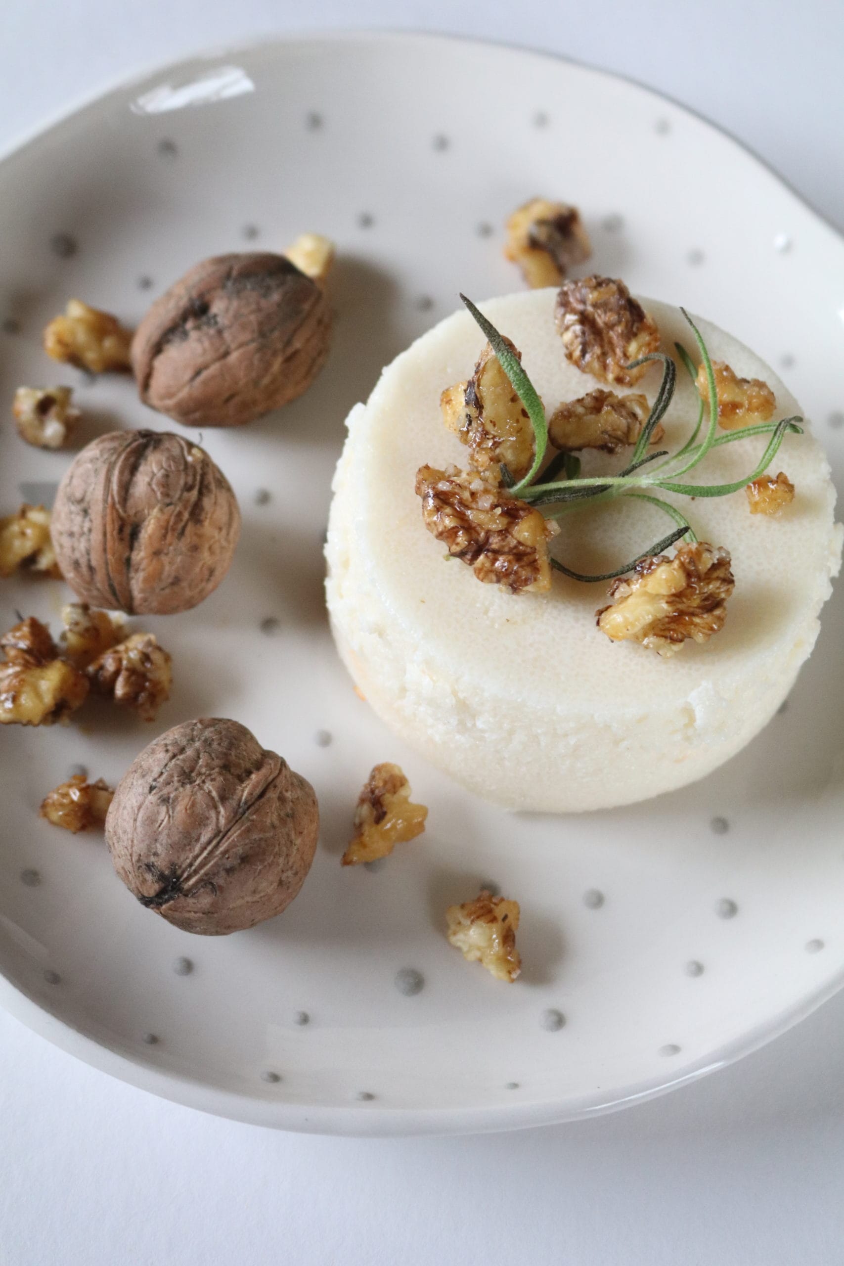 Turkiškas manų kruopų pudingas su karamelizuotais graikiniais riešutais
