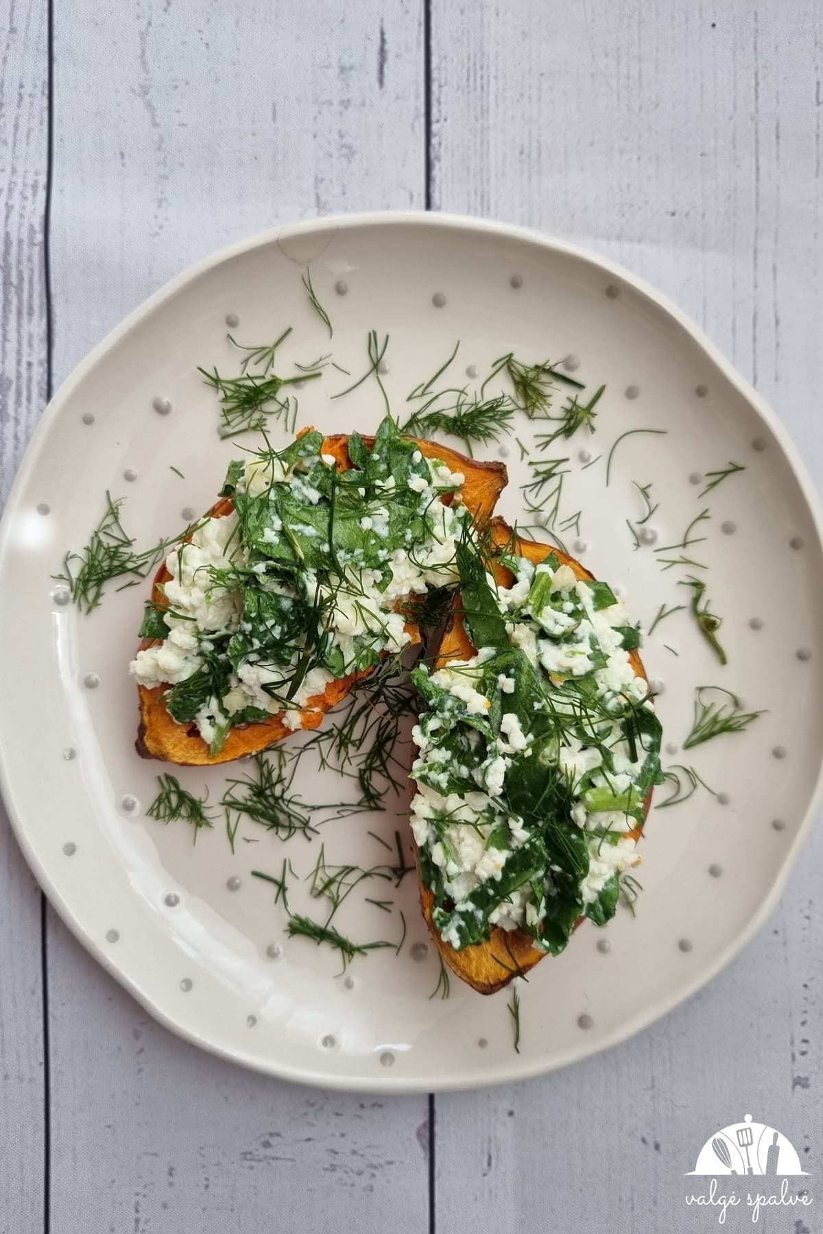 Batatai įdaryti varške su česnaku ir špinatais