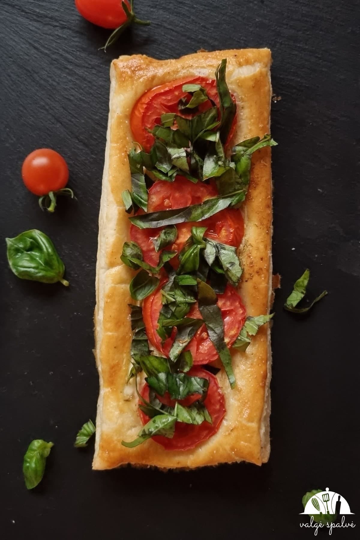 Sluoksniuotos tešlos pyragėliai su pomidorais