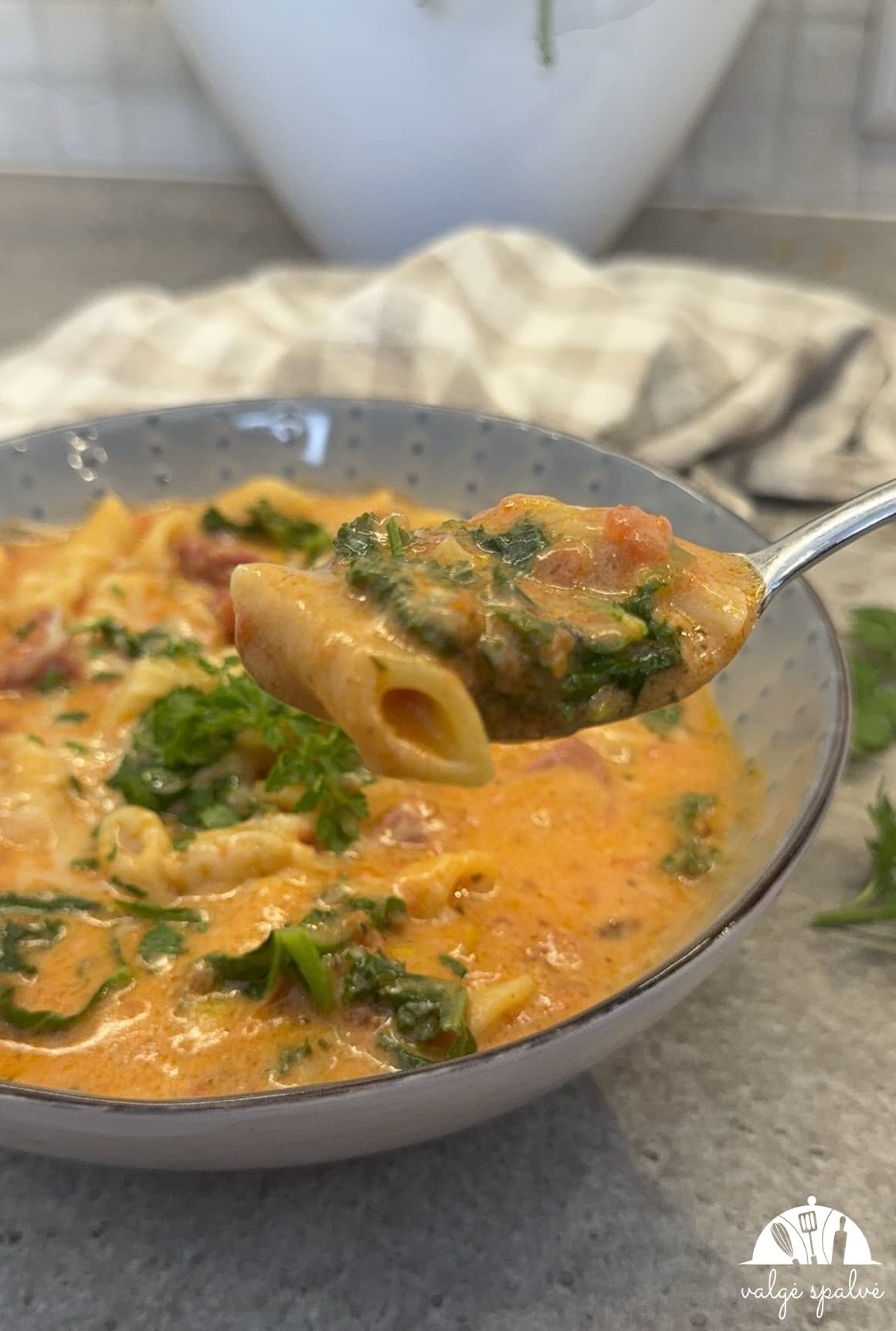 Toskanos pupelių troškinys su saulėje džiovintais pomidorais ir feta