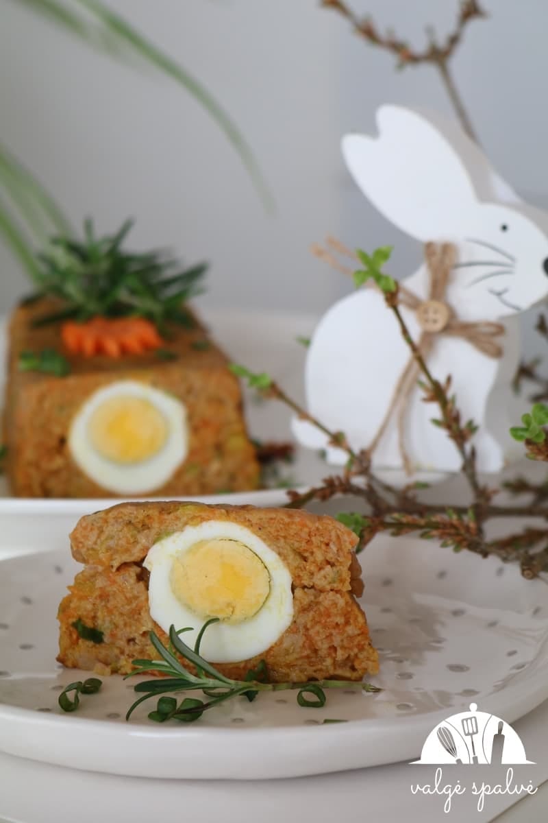 Netikras zuikis su virtais kiaušiniais ir morkomis