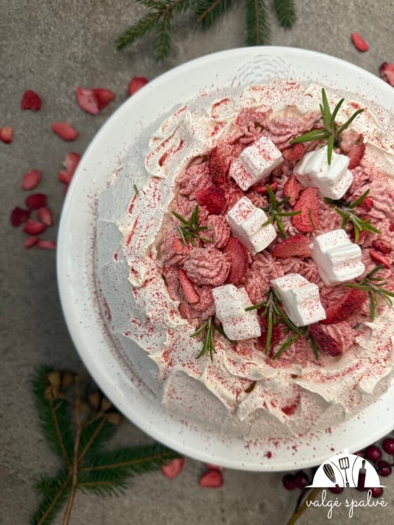 Ši Pavlova – tikra Kalėdų braškinė magija. Taip taip šiais metais mano Kalėdos kvepia braškėmis! Ir man tai labai labai patinka.