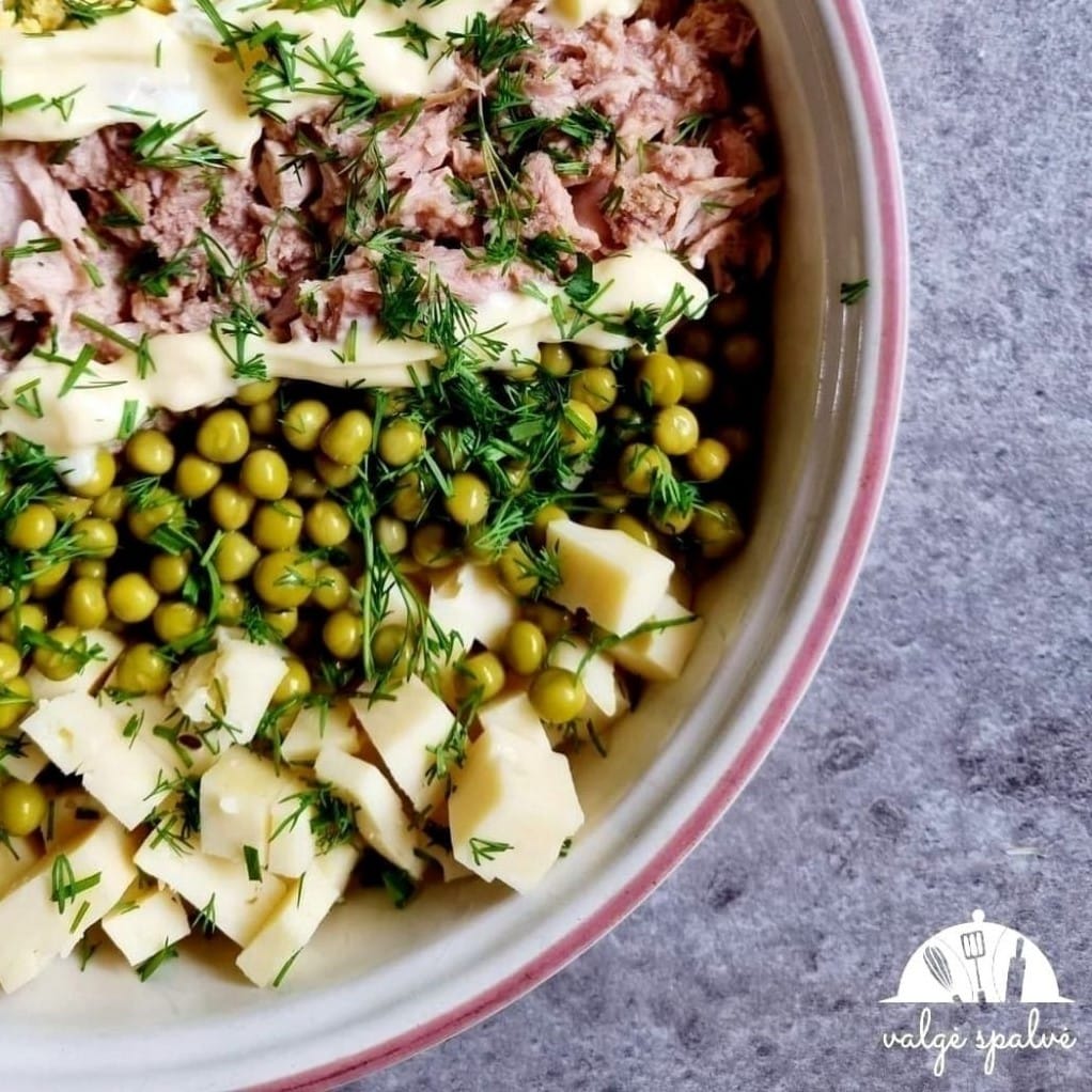 Salotos su tunu, žirneliais ir kiaušiniais